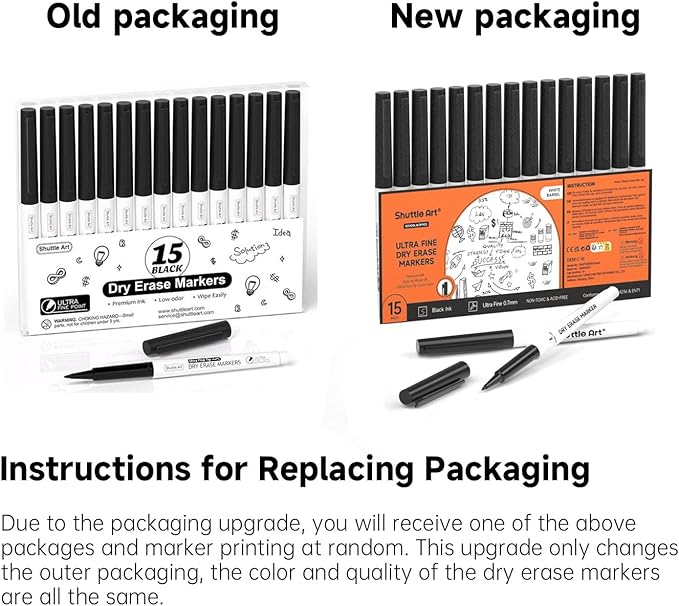 - Shuttle Art 15 pack black ultra fine dry erase markers, all with black ink. More markers with cheaper price!