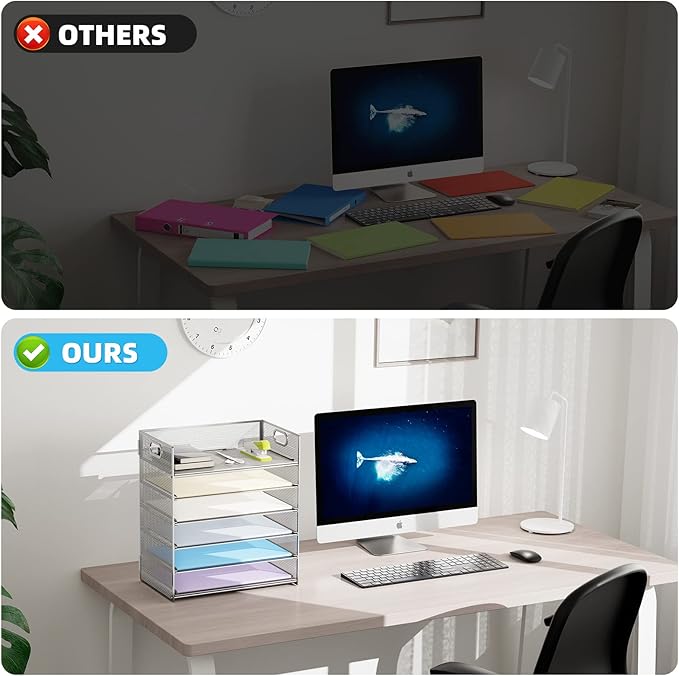 - 【MULTI-PURPOSE ORGANIZER】6-tier layered design and large capacity make the paper organizer become an ideal choice for managing all kinds of letter-size letters, paper, books, bills, etc. Let you quickly identify the contents of each compartment super easy