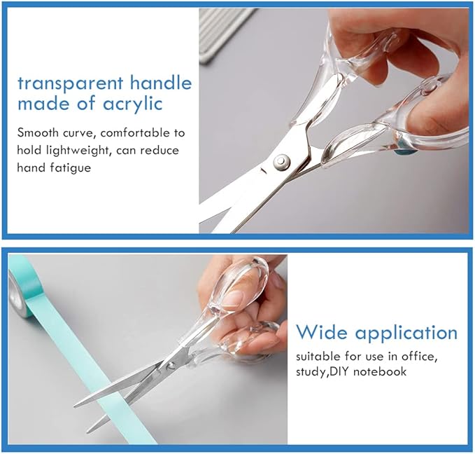 - 【Optimal Quality】 With specially sharpened stainless blades, our clear scissors deliver smoother and easier cut than many other ordinary scissors in the market. The other end of the blades is well polished and well-blunted to ensure no accidental cut on hands.