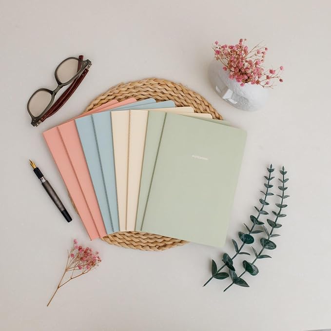 Notebook Journal, Pack of 8 Notebooks, A5, 5.5 x 8 in, Cute Soft Paper Cover Notepad for Travel, Meditation, Wedding and Dream Journals, Lined Diary Notepad Paper (Spring Colors)