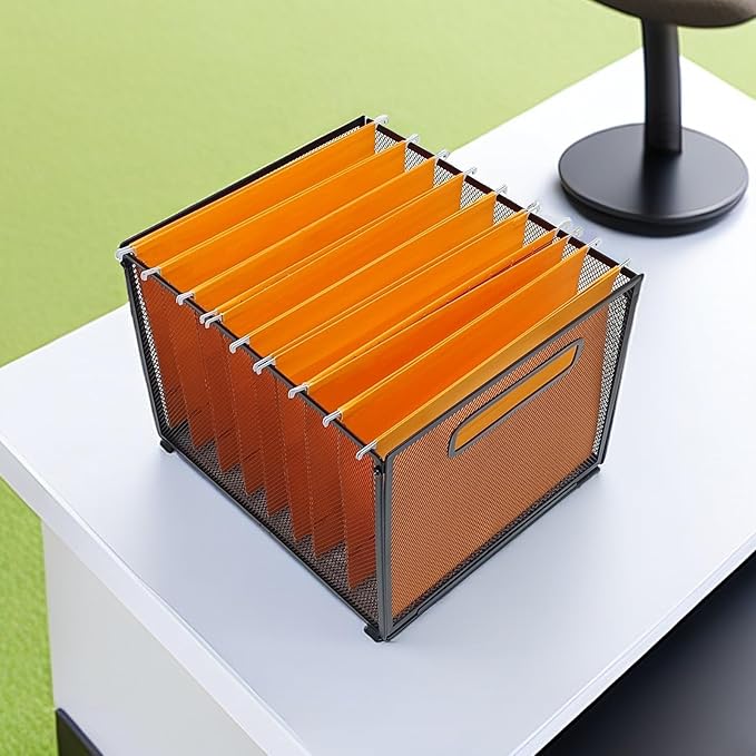 SETTFRFE Letter Size Hanging Folder Organizer,Metal Mesh Hanging File Folder Box,Office File Baskets,Black