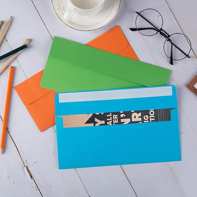 100 Pack Colorful #10 Business Envelopes Self Seal Standard Envelopes for Office Checks, Business, Letter Mailing Invoices, 4.13 x 9.49 Inches (Colorful)
