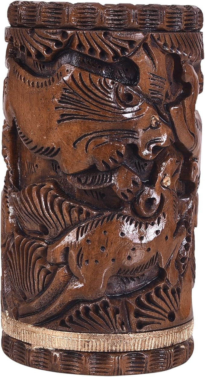 Craft Trade Hand Carved Wood Pen Holder for Desk Organizer for Home School Office Pencil Cup Pot Storage Box Suitable for Stationery - Natural Wood