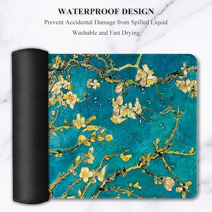 Auhoahsil Desk Pad, XXL Large Mouse Pad, Extended Gaming Mousepad, Cute Desk Mat for Women, Big Office Accessories Mouse Pad for Computer Keyboard and Laptop, 35.6" x 15.7", Teal Van Gogh Almond Tree