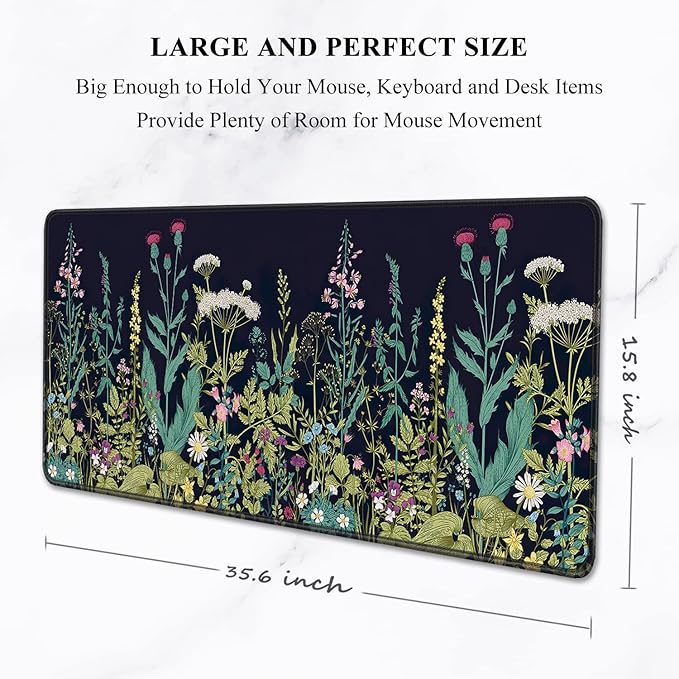 Auhoahsil Desk Pad, XXL Large Mouse Pad, Extended Gaming Mousepad, Cute Desk Mat for Women, Big Office Accessories Mouse Pad for Computer Keyboard and Laptop, 35.6" x 15.7", Black Wildflower Night