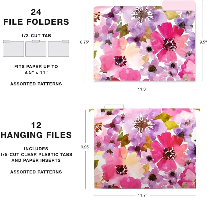 - HOME, OFFICE, OR BOTH - This deluxe designer printed hanging file folder kit will look fantastic in any home, office, or classroom. Keep better track of your documents with color coordinated files and folders!