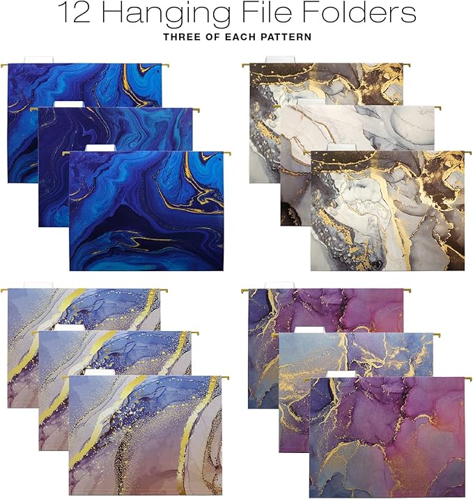 Global Printed Products Deluxe Designer Hanging File Folder Kit, Includes Metal Hanging Basket, 12 Hanging Folders, 24 File Folders, 1/3 Cut Tab, Assorted Positions, Letter Size (Marble)