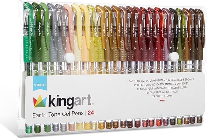 KINGART Soft Grip Earth Tone Gel Pens, XL 2.5mm Ink Cartridge, Set of 24 Unique Colors