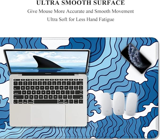 Auhoahsil Large Mouse Pad, XXL Gaming Mousepad, Desk Mat for Desktop, Thick Rubber, Big & Long Size, Stitched Edges, Full Desk Pad for Laptop & Computer, Extended 31.5 x 11.8 in, Janpanese Wave