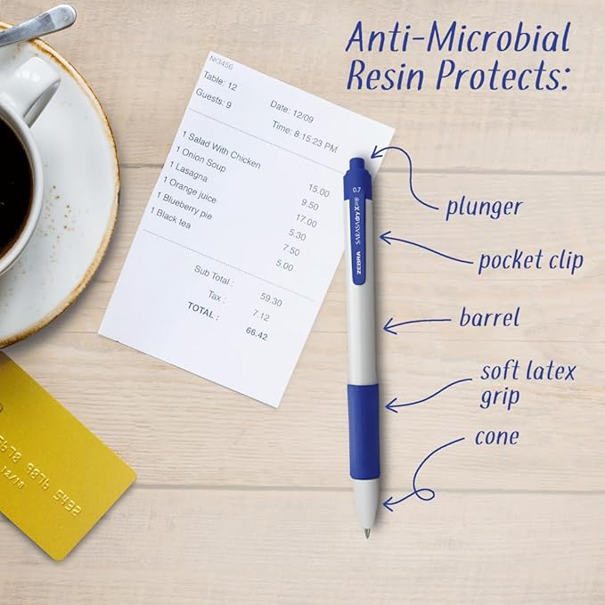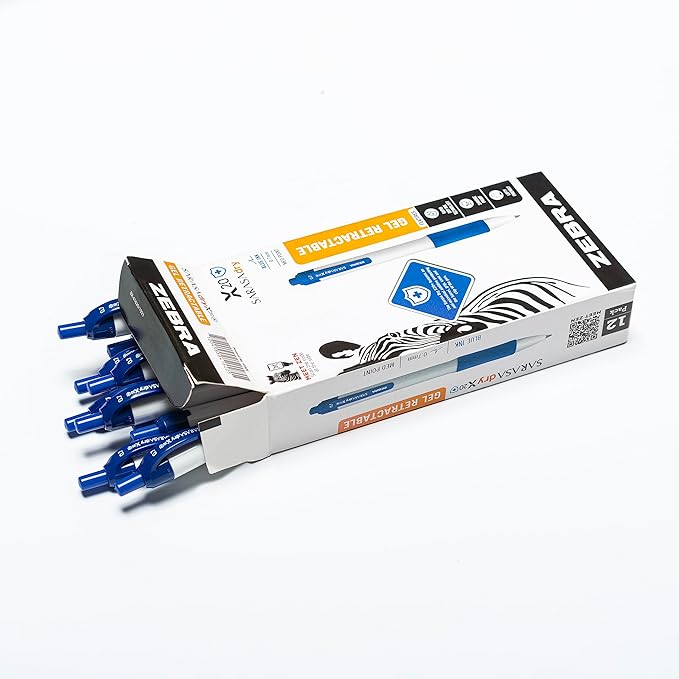 Zebra Pen Sarasa Dry X20+ Retractable Gel Pen, Plastic Barrel with Protective Coating, Medium Point, 0.7mm, Blue Ink, 12-Pack (41620)