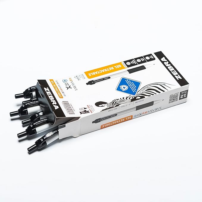 Zebra Pen Sarasa Dry X20+ Retractable Gel Pen, Plastic Barrel with Protective Coating, Medium Point, 0.7mm, Black Ink, 12-Pack (41610)