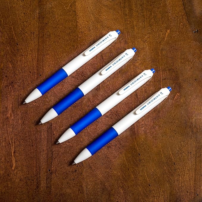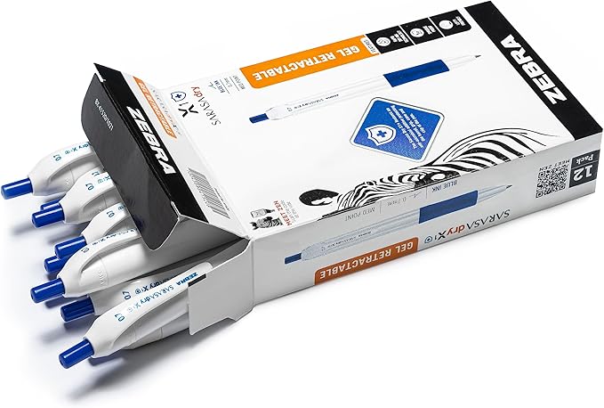 Zebra Pen Sarasa Dry X1+ Retractable Gel Pen, Plastic Barrel with Protective Coating, Medium Point, 0.7mm, Blue Ink, 12-Pack