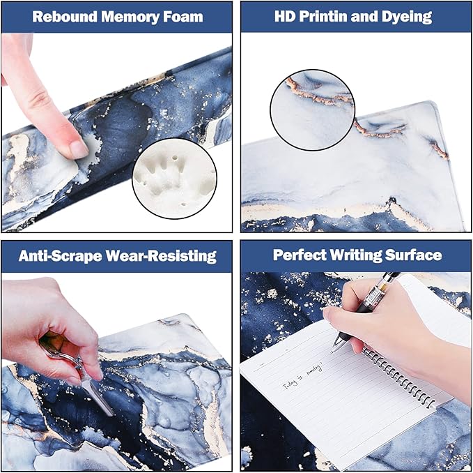 ARTSO Large Gaming Mouse Pad, Keyboard Wrist Rest Pad & Wrist Support Mousepad Set, Stitched Edge, Extended, Non-Slip Base, Memory Foam,Multifunctional Desk Mat 4pcs for Office & Home, Gilt Marble