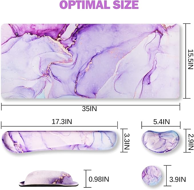 ARTSO Large Gaming Mouse Pad, Keyboard Wrist Rest Pad & Wrist Support Mousepad Set, Stitched Edge, Extended, Non-Slip Base, Memory Foam,Multifunctional Desk Mat for Office & Home, Purple Blue Marble