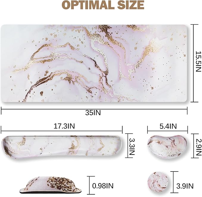 ARTSO Large Gaming Mouse Pad, Keyboard Wrist Rest Pad & Wrist Support Mousepad Set, Stitched Edge, Extended, Non-Slip Base, Memory Foam,Multifunctional Desk Mat 4pcs for Office & Home, Pink Marble