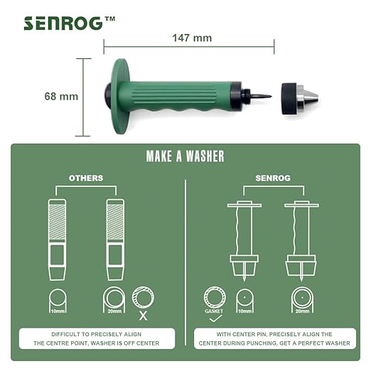 - 【Built-In Central Punch】The center point of the head of the handle is retractable, allowing you to find the same center of the circle when you punch the second time, making your washer more precise and not out of position.