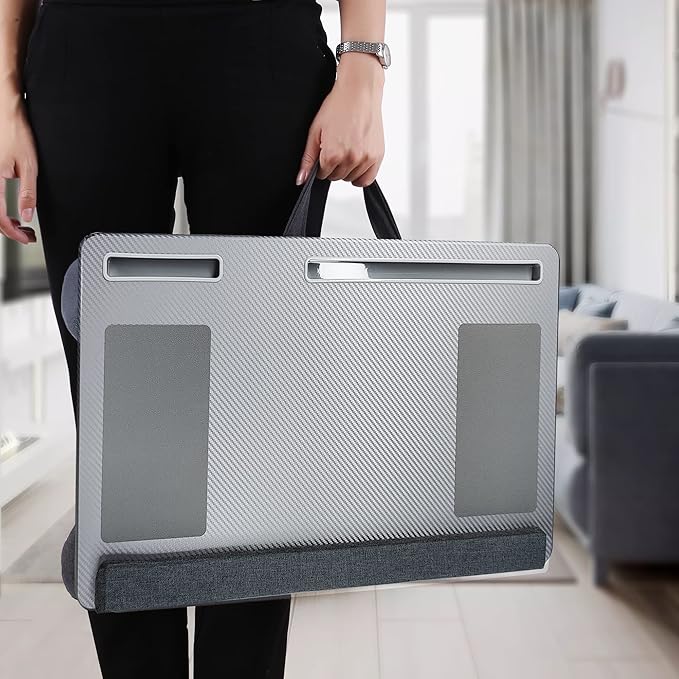 Extra Large Lap Laptop Desk- Home Office Portable LapDesk with Mouse Pad & Wrist Rest for Notebook/MacBook/Tablet, Sofa Bed Working, Writing, Drawing (Carbon Silver, Fit Up to 17-inch Laptops)