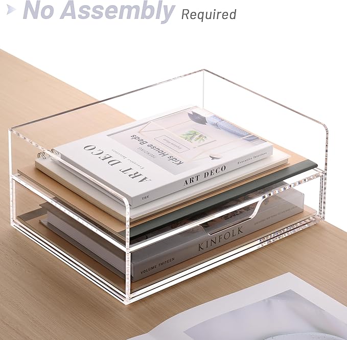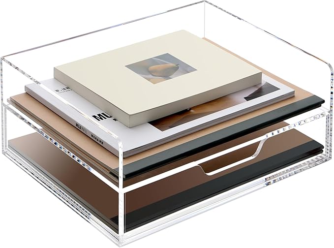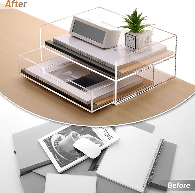 - SPACE SAVING AND EASY TO CLEAN: SANRUI acrylic paper letter organizer is designed to be beautiful and practical, the 2-layer design can effectively improve the utilization of vertical space and provide large capacity storage space. The acrylic desktop organizer can be cleaned directly with water or wiped with a damp towel.