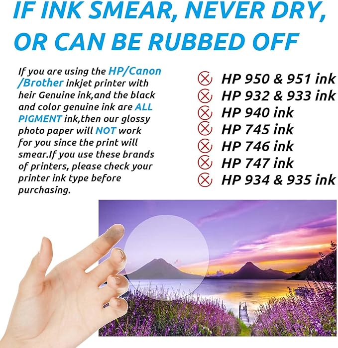 - Features: Fast Dry, No Smudging, No Smearing, Scratch Resistant, must use DYE INK.