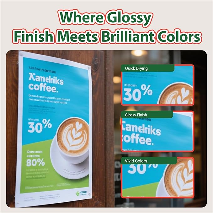- PHOTO PAPER FEATURE: thiner, fast drying, glossy white , professional quality prints, specially designed to produce high-quality prints. Brilliant colors and sharp, crisp details .