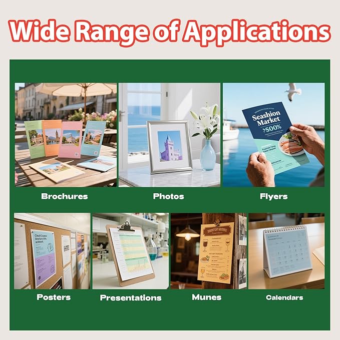 - PAPER SIZE: 8.5x11 inches, letter size 30lb, 115gsm photo paper glossy.