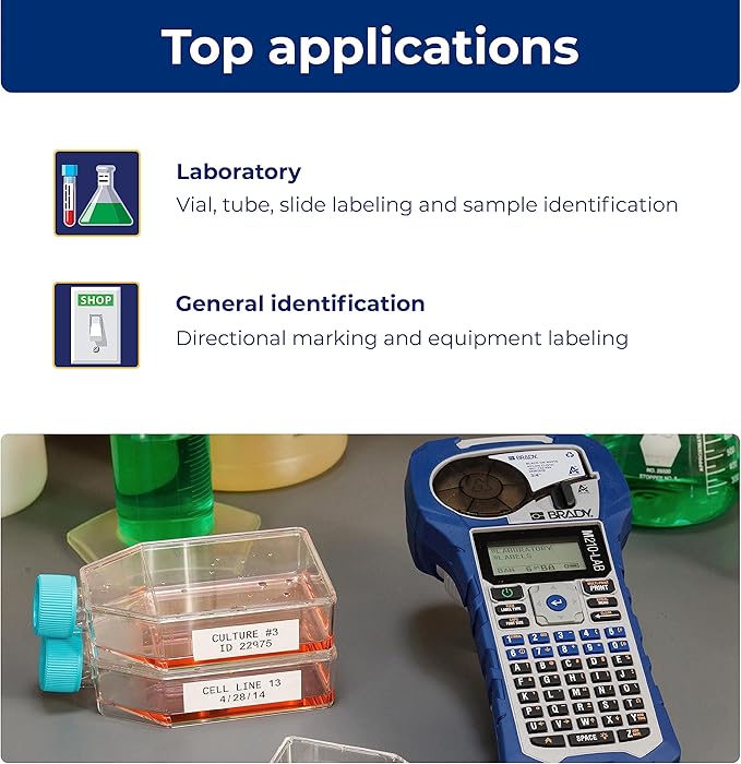- Create fast and accurate labels for lab equipment and slides, tubes, beakers, and bottles