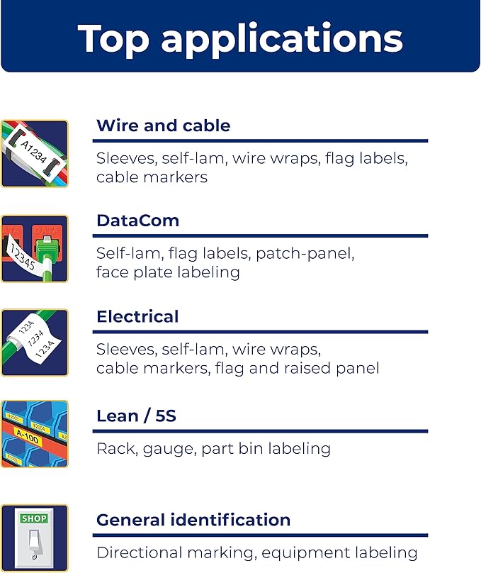 - Printer creates multi-line labels for clear identification of wires, panels, circuit boards and other industrial items