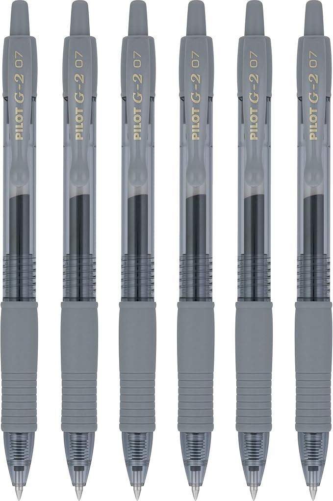Pilot G2 Premium Refillable & Retractable Rolling Ball Gel Pens, 0.7mm Fine Point, Gray, 6-Pack