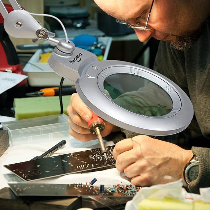 - ADJUSTABLE METAL SWIVEL ARM adopts plastic spraying technology: more eco-friendly and durable for a longer time - rust prevented, stain resistance and isn’t easy to fade. Stay in place what you need, not falling. The magnifying lamp with light can reach almost any angle. Easier for fine works - computer electronics repair, solering pcb board, inspection, diamond art and other professional use - dental, industrial, spa salon, laboratory.