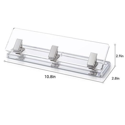 Acrylic and Silver Standard 3 Hole Punch,10 Sheet Capacity, Desktop Hole Puncher 3 Ring, Office Desktop Accessory, Clear/(Silver)
