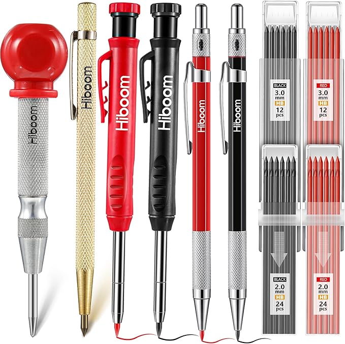 - Widely Use: Hiboom mechanical pencil set come with Handy pen style design with convenient pocket clip; 36pcs black red and yellow refills can meet your marking needs for a long term and wide apply for metal wood glass ceramics paper and more; This carpenter tools set is suitable for machinist, architect carpentry, comtractor, electrician.