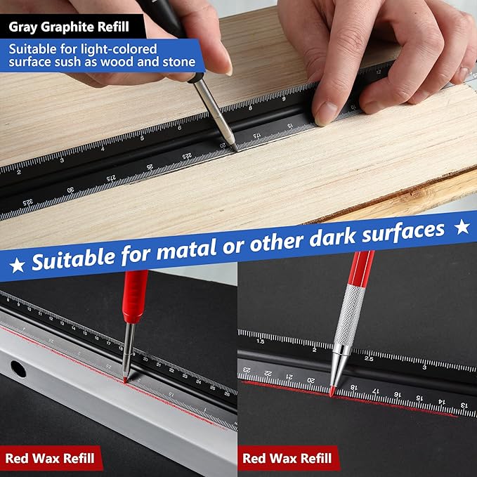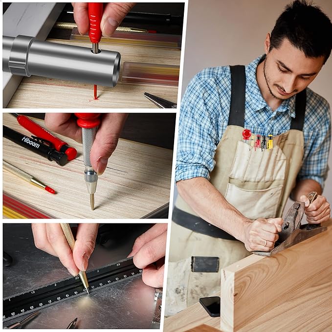 - 10 Pack Mechanical Carpenter Pencils Set: Get everything you need in one comprehensive package, including 1×center punch, 1×carbide scribe, 2×2mm carpenter pencils, 2×3mm deep hole marker, 2×2mm marker refill (24pcs), 2×3mm marker refills (12pcs). The complete carpenter pencils combination allows you to finish your work faster and more easily