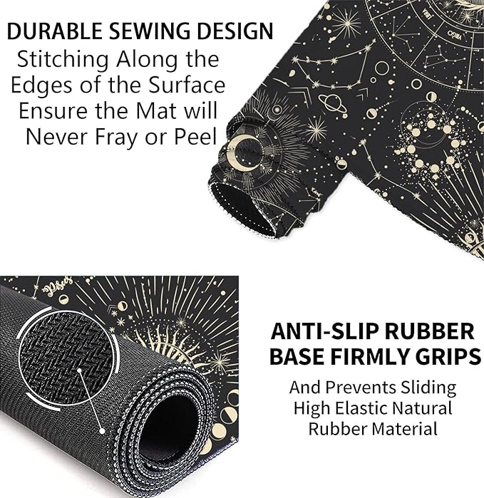 - 【Anti Slip & Stitched Edges】The soft and dense non-skid nature rubber base keeps this desk pad cover firmly in place. Just immerse into your work or games without worrying about the annoying mouse pad movement. And the delicate stitched edges can prevent wear, deformation and degumming in prolonged use. Design for security and durability, and enhances the aesthetic and lifespan of the mouse pad.