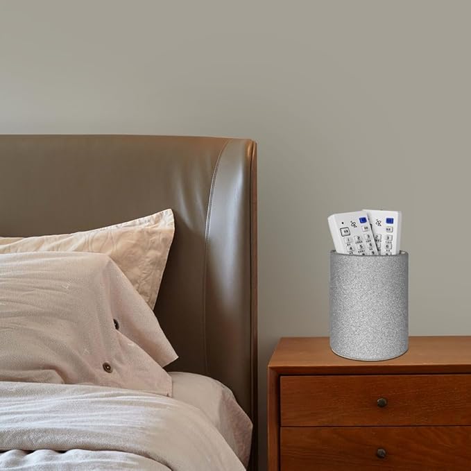 CXLE Pencil Holder Desk Organizer, PU Leather Pen Holder for Desk Decor Organizer Cosmetics Brush Holder for Teachers Students Storage Box Office Classroom(Sliver)