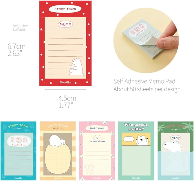 Monolike Story Town Sticky-it - 6p Set Self-Adhesive Memo Pad 50 Sheets