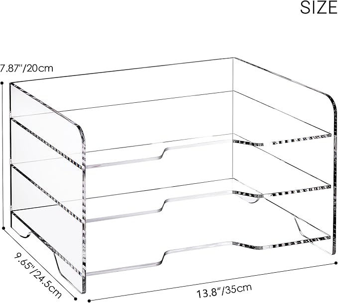 - LARGE CAPACITY PAPER ORGANIZER: The 3 tier paper tray desktop organizer measures 13.78"L x 9.65"W x 7.9"H, holds all office supplies and accessories such as letters, paper, printer paper, 9” x 12” construction paper, books, folders, bills, magazines and more. Keep your desk free from clutter and increase work efficiency.