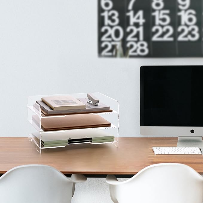 - SPACE SAVING AND EASY TO CLEAN: SANRUI acrylic file organizer is designed to be beautiful and practical, the multi-layer design can effectively improve the utilization of vertical space and provide large capacity storage space. The acrylic desktop organizer can be cleaned directly with water or wiped with a damp towel.