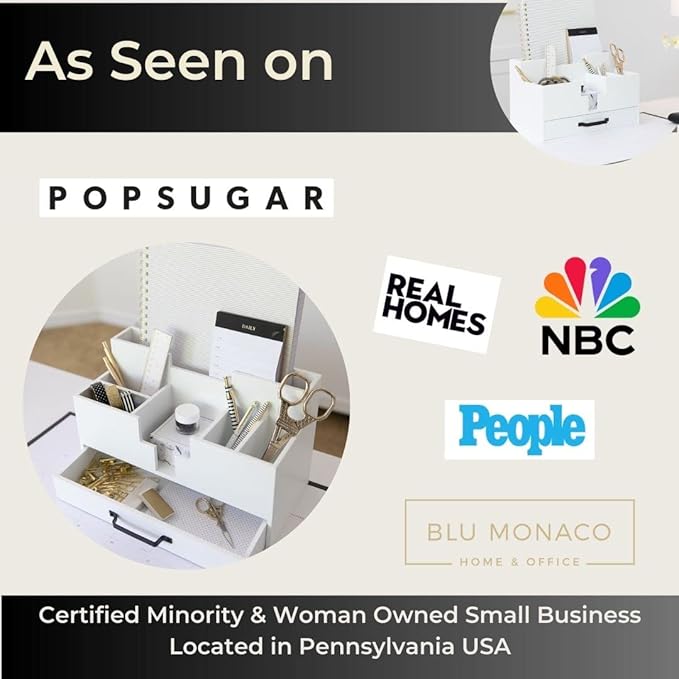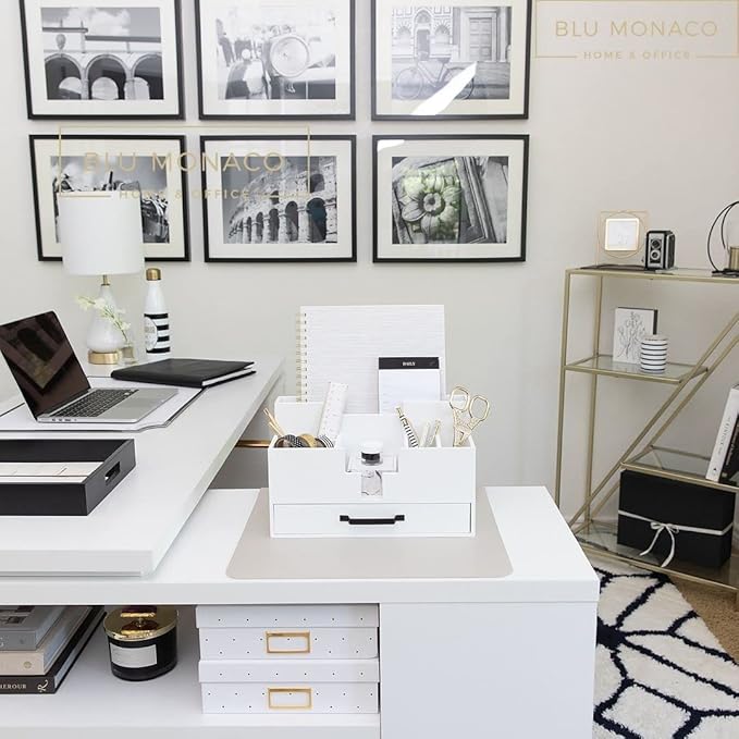 - MODERN CLEAN-LINED DESIGN: The Blu Monaco office desk organizers and accessories is elegant and chic. The popular style of this desk organizer with drawer is in; time to make it yours!