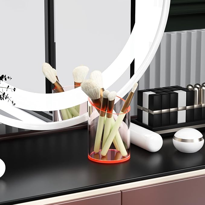 Pen Holder for Desk Organizer, Acrylic Makeup Brush Organizer Sanitizer Holder Pen and Pencil Holder for Office, Home, School, Neon Pink