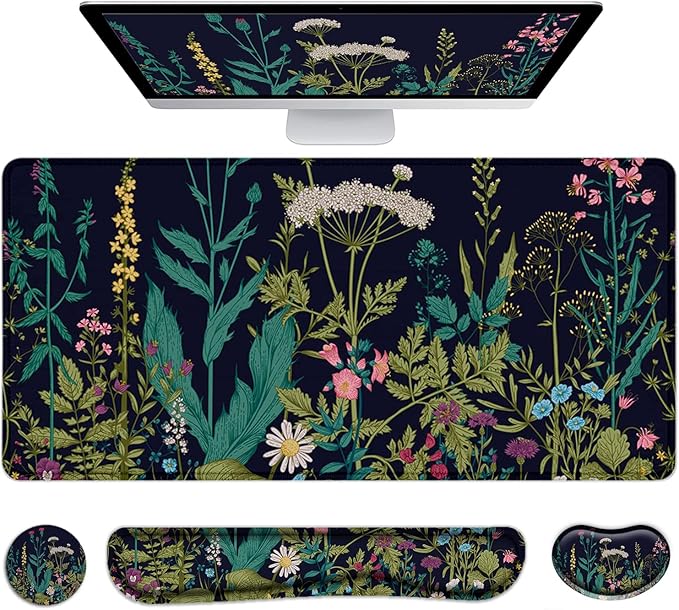 - 【4-in-1 Mouse Pad Set】Lateefah large mouse pad and wrist rest set includes desk pad (35.4x15.7inch), keyboard wrist rest(16.9x3.5inch), mouse wrist rest(5.5x3.1inch), cup coaster(3.5x3.5inch). No need to buy separately, at a super cost-effective price. This desk pad for keyboard and mouse is large enough to fit your mouse, gaming keyboard, and other desk items. Our desk pad protector can keep a clean, uncluttered desk. This helps to improve the gaming experience or work efficiency in the office.