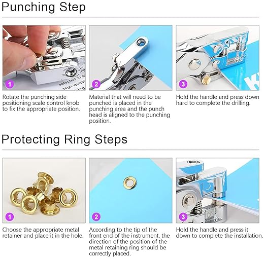 - 1、 Eyelet size 3/16" (5mm), made of heavy duty carbon steel, eyelet punching pliers are equipped with adjustable insertion guides that are elastic to reduce hand pressure.
