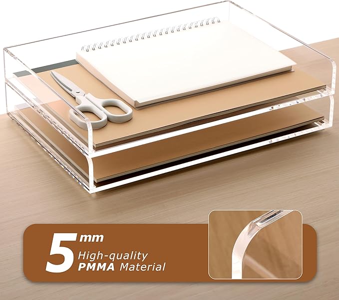 - 【 Acrylic Countertop Organizers Tray】: Contains 2PCS 1 Tier Tray , stake any Layer Together in A Second, Great for Holding Letter/A4 Size Paper, Folders, Stationary, Desk Accessories Tray.