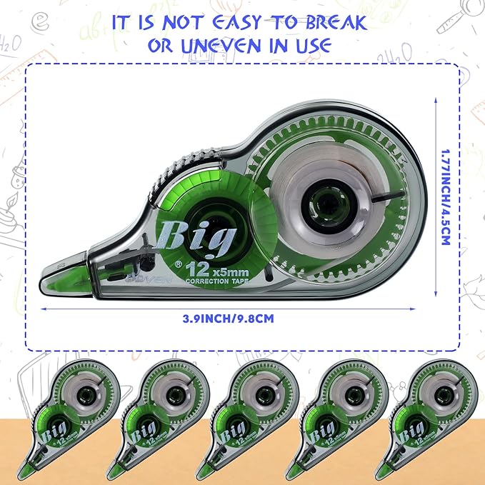 - Measurement Information: the size of correction tapes is approximately 12 meters x 5 mm/ 39.4 ft x 0.2 inch, they are long enough for you to use them for a long time