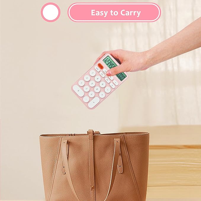 - BIG DISPLAY: Large button, candy color. Large LCD screen, 12-digit display, vertical back, 15-degree angle for easy-to-read calculator. One LR44 battery is included in the package