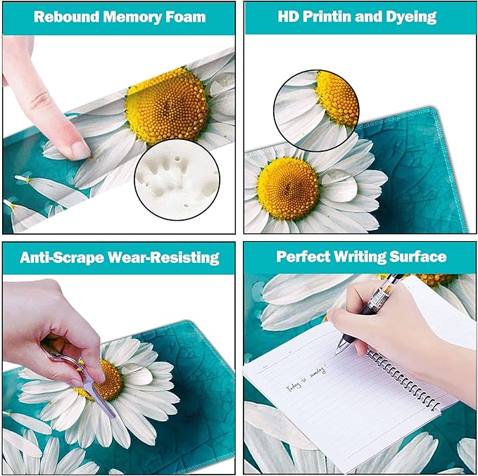 ARTSO Large Gaming Mouse Pad Set, Keyboard Wrist Rest Support + Mouse Wrist Cushion + Extended Mousepad + Coaster, 35x15.5in Multifunctional Desk Mat 4pcs, Cute Daisy