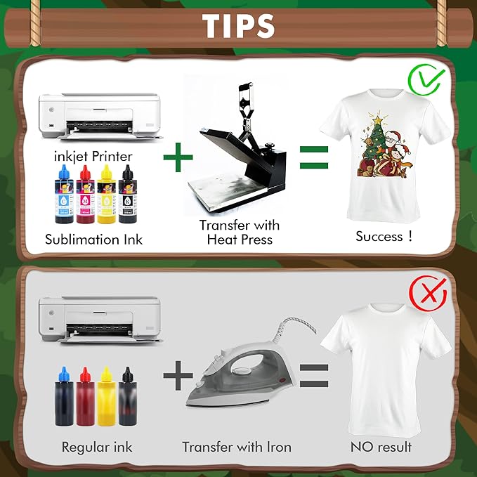 - Warm Tips:All sublimation paper only work with light colored polyester fabric, polyester coated items and material with cotton content≤30%. You must use sublimation ink, regular ink doesn’t work.Please finish sublimation and see the color result before change any setting.