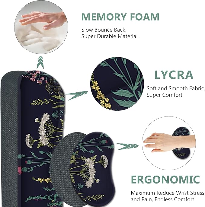 - 【ERGONOMIC DESIGN】: Keyboard wrist rest & mouse wrist support designed with comfortable memory foam and breathable material fabric, perfectly support your wrist while typing or sliding, minimizing relieve pressure and pain of your wrist, and maintaining wrist comfort and normal blood circulation.