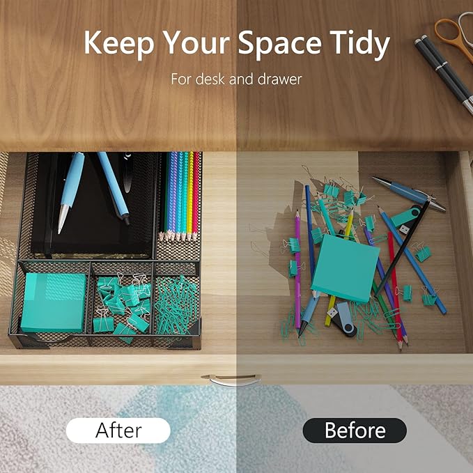 - Perfect Size: This office drawer organizer measures 12.3" x 8.4" x 1.8", making it the ideal size for most standard desk drawers.