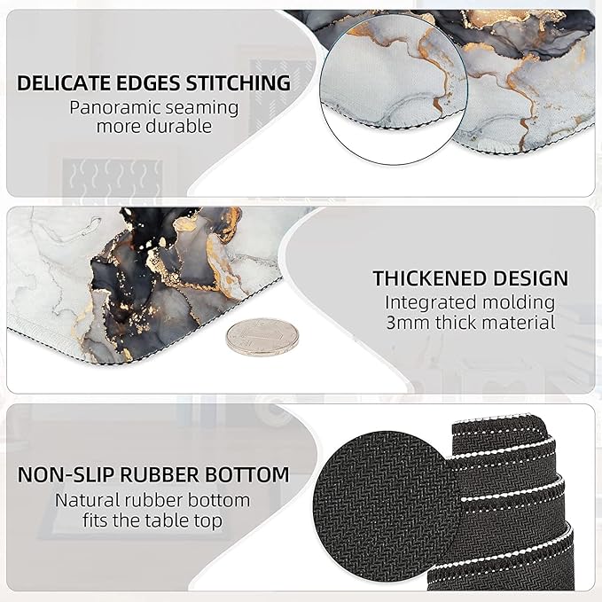 - 【Anti Slip & Stitched Edges】The soft and dense non-skid nature rubber base keeps this extending desk mouse pad firmly in place. Just immerse into your work or games without worrying about the annoying mouse pad movement. And the delicate stitched edges can prevent wear, deformation and degumming in prolonged use. Design for security and durability, and enhances the aesthetic and lifespan of the desktop mouse pad.