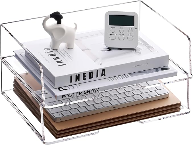 - Extra Large Paper Tray: Organize papers, files, documents, letterheads and other stationery on your desktop with this desktop organizer and accessory. The transparent material makes it easy to find the stored items, very delicate and beautiful. Ideal for office or home office organization.
